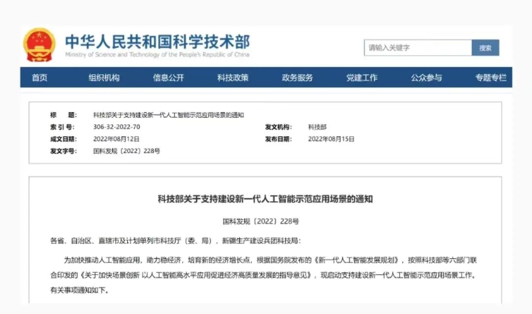 科技部首批支持建設十個新一代人工智能示范應用場景