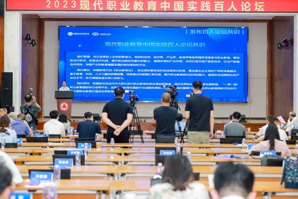 論壇還發(fā)布了《現(xiàn)代職業(yè)教育中國實踐百人論壇共識》?!豆沧R》指出,高質(zhì)量職業(yè)教育作為高質(zhì)量教育的重要組成部分,不僅是服務(wù)國家戰(zhàn)略、區(qū)域經(jīng)濟(jì)社會發(fā)展以及人的全面發(fā)展的教育,也是培養(yǎng)拔尖創(chuàng)新人才、工程技術(shù)人才、技術(shù)技能人才、數(shù)字工匠人才等現(xiàn)代化建設(shè)人才的教育,還是國家需要、社會認(rèn)可、家長期盼、學(xué)生選擇的教育?!豆沧R》還指出,要補齊知識化短板,提高職業(yè)教育質(zhì)量、改善職業(yè)教育形象;要充分發(fā)揮百人論壇的影響力,吸納科技界、經(jīng)濟(jì)界、產(chǎn)業(yè)界、教育界等各界精英深度參與職業(yè)教育;職業(yè)院校要承擔(dān)科技成果轉(zhuǎn)化職責(zé),探索建立科教融匯新機制;要深化國際交流合作,將中國職業(yè)教育打造成世界教育中的亮麗風(fēng)景。